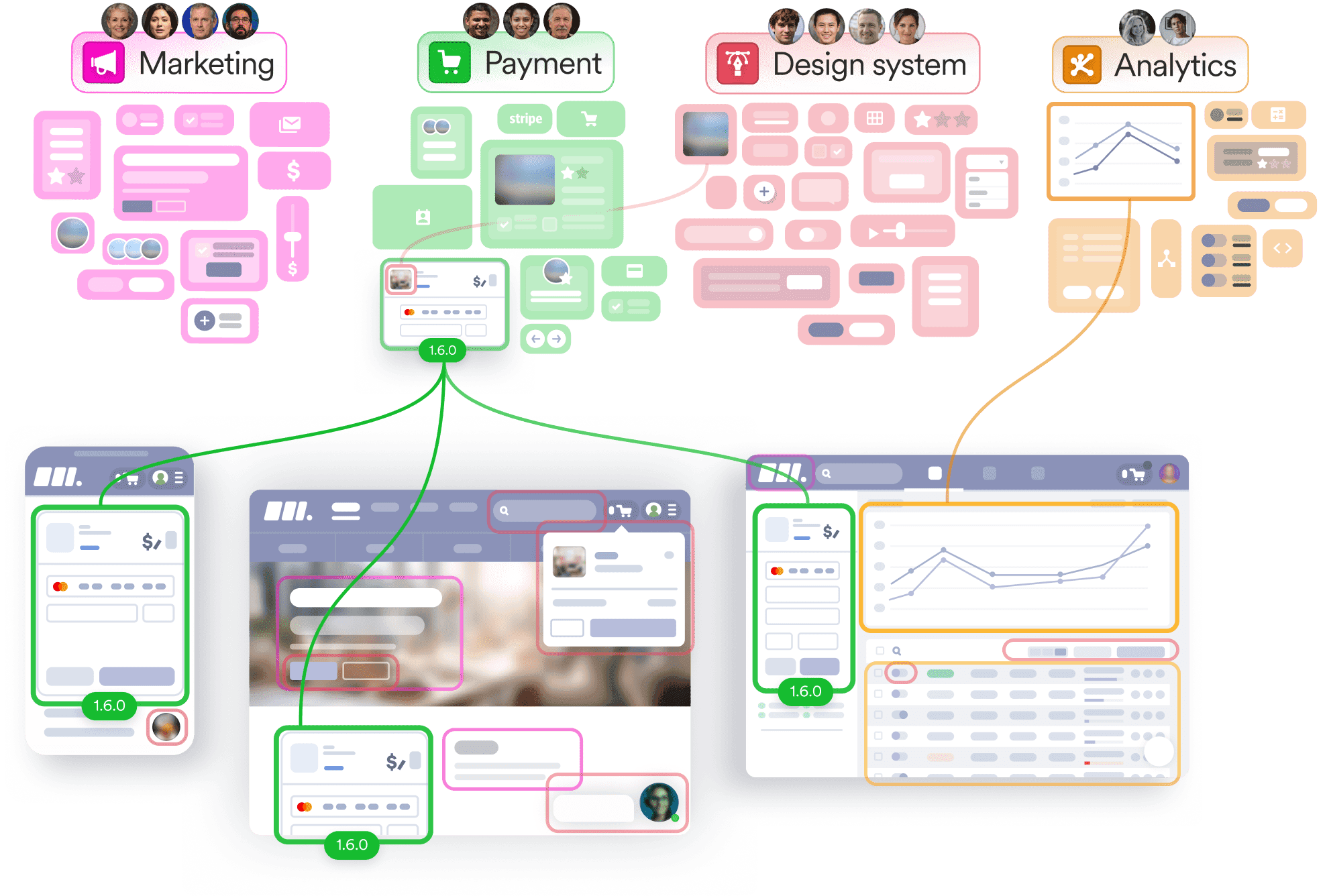 • Live Preview with Individual Component Versioning: Enables developers to preview components live while tracking and managing different versions.